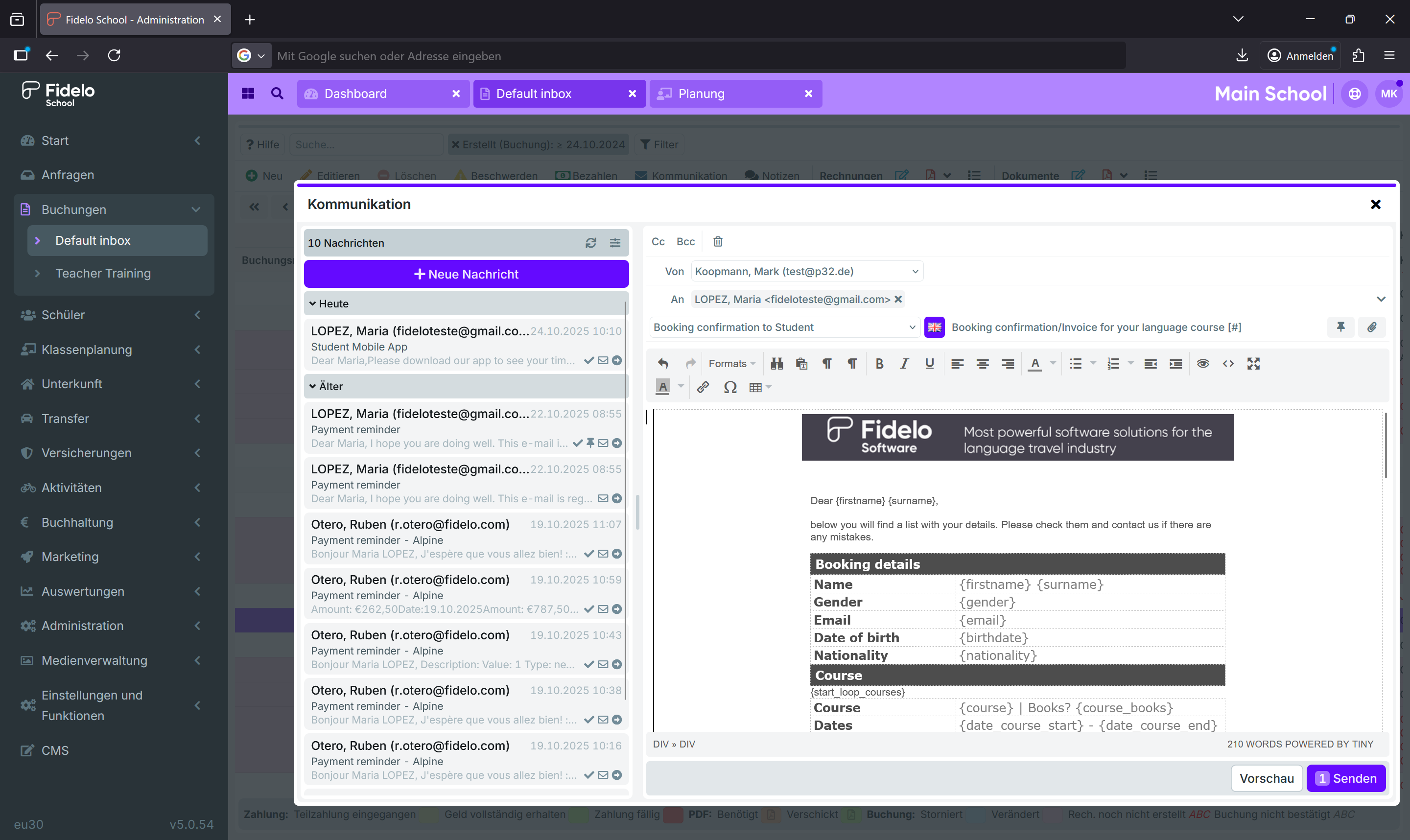 Fidelo School is a complete management platform for language schools. It covers every operational process, from enquiries and enrolments to timetabling, invoicing, and reporting. The system is fully web-based, modular, and integrates with major online tools. Designed specifically for language schools, not generic education software.